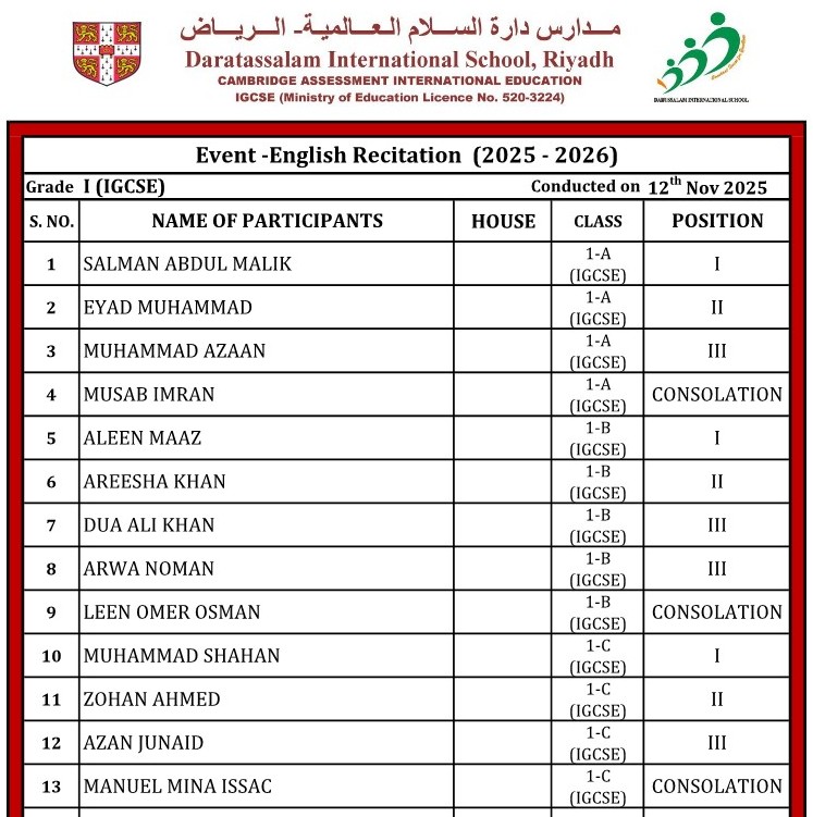 22. Quran Recitation Competition (Grade - 1 )