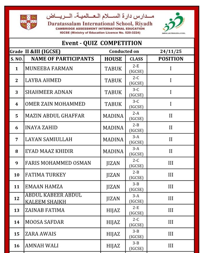 15. Quiz Competition (Grade-2 & 3)