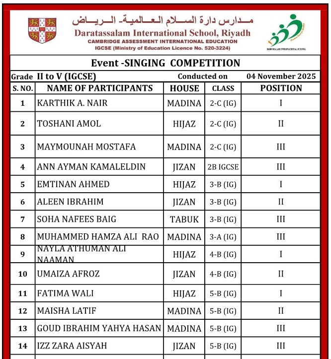 8. Quran Recitation (Grade 4 & 5) Boys